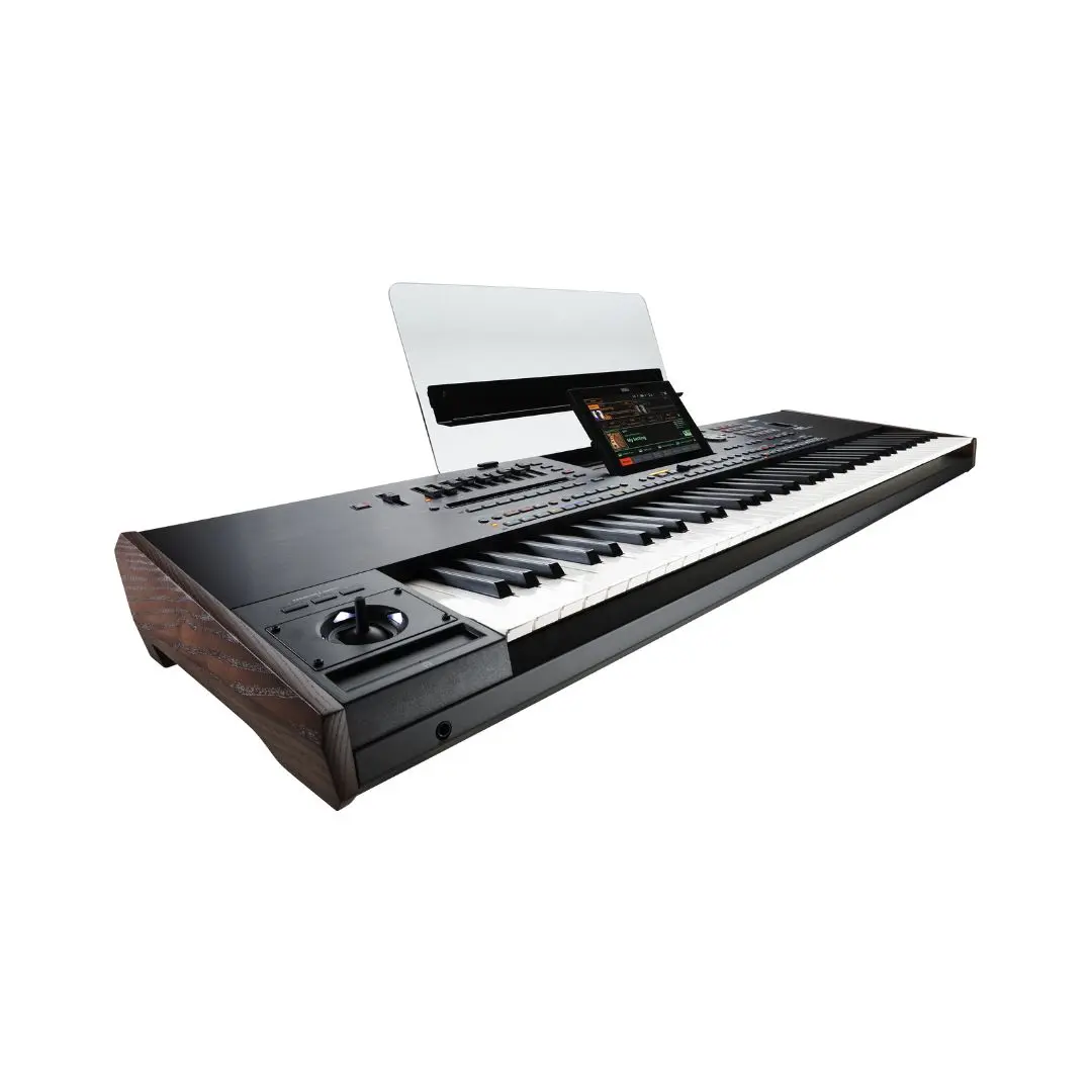 Featuring a 76-note semi-weighted keyboard with aftertouch, the Pa5X-76 gives expressive responsiveness for dynamic playing and nuanced control over modulation and effects. Navigation and editing are streamlined via a tiltable 8″ TouchView color touchscreen, while the 16-pad matrix, assignable sliders and buttons, joystick, and ribbon controller offer hands-on performance control without deep menu diving.