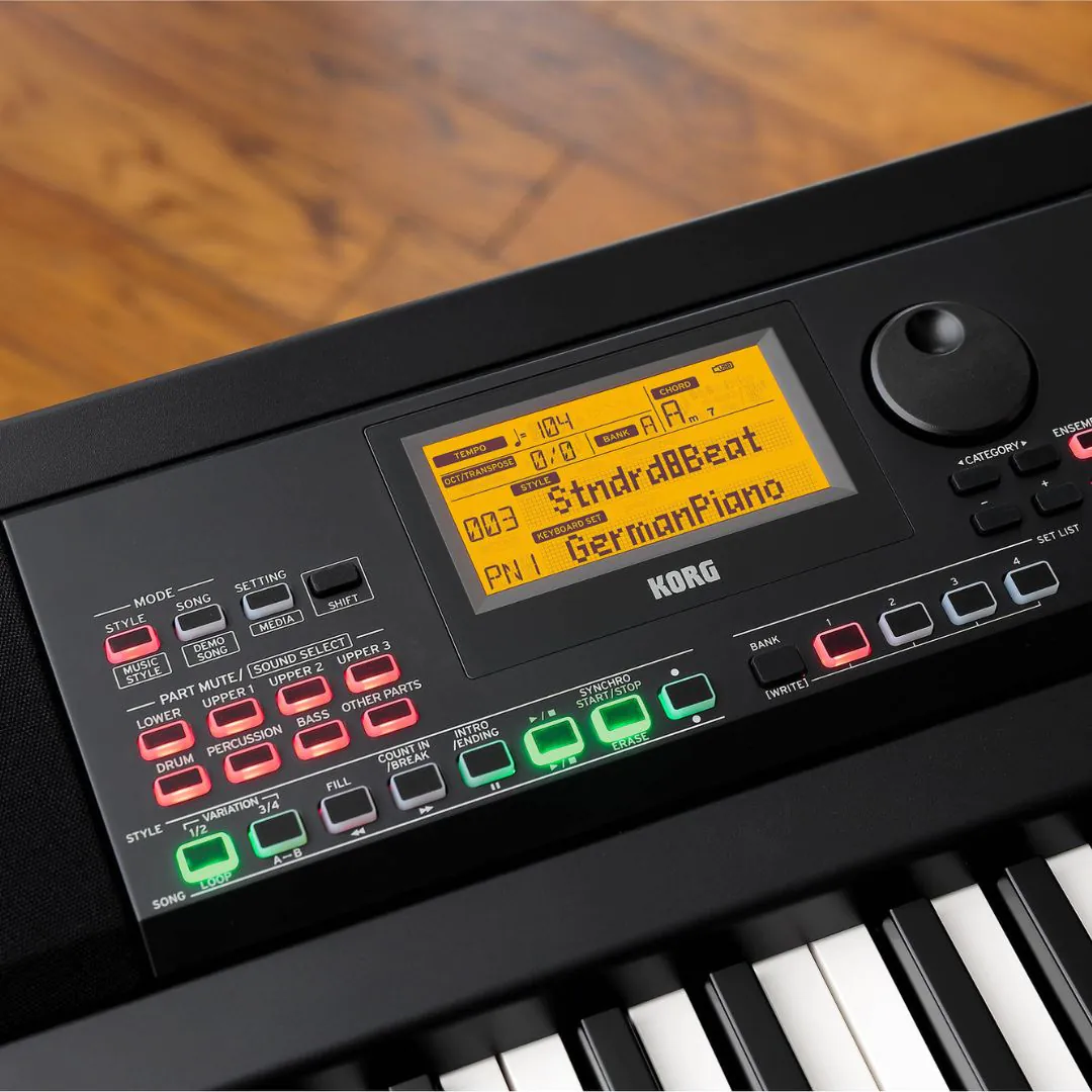 At its heart is an 88-key Natural Weighted Hammer Action keyboard that delivers a realistic piano feel with expressive dynamics, ideal for both classic repertoire and contemporary playing. The XE20SP’s sound engine includes two premium concert grand piano voices (German and Italian) along with 700+ additional sounds such as electric pianos, organs, strings, brass, synths, and wind instruments, all sampled with clarity and depth. (korg.com) The piano also features 280 preset styles and an automatic accompaniment system, which generates full-band backing tracks in real time based on your chord input — bringing your performance alive with intricate arrangements.