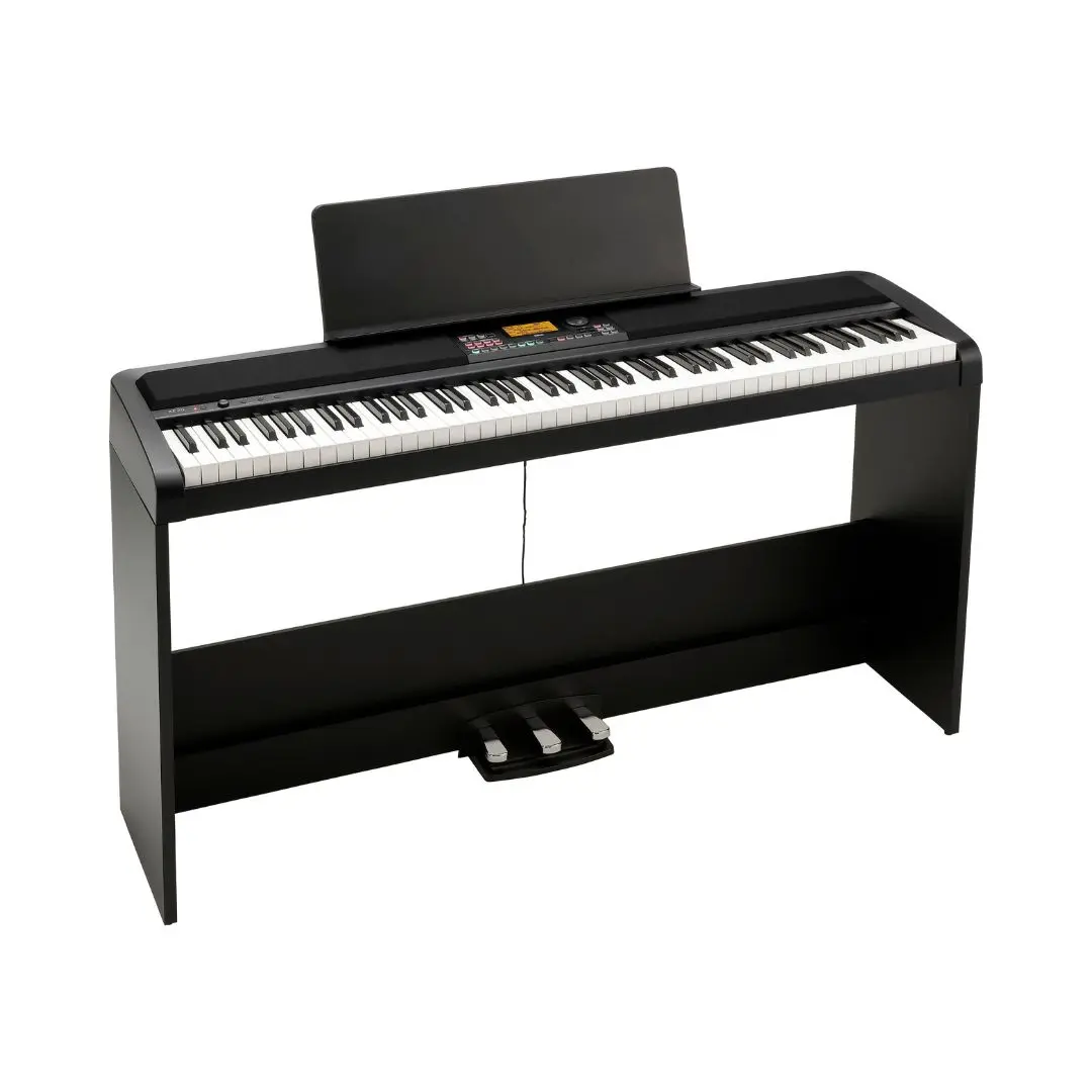 The Korg XE20SP Digital Ensemble Piano with Stand and 3-Pedal Unit is a complete piano solution that blends authentic weighted playability, rich sound generation, and full-band accompaniment features — all packaged with a dedicated stand and a 3-pedal unit for an immersive, acoustic-style performance experience. Designed for pianists, performers, and home musicians alike, this bundled ensemble offers a complete set-up right out of the box, eliminating the need for separate accessories.