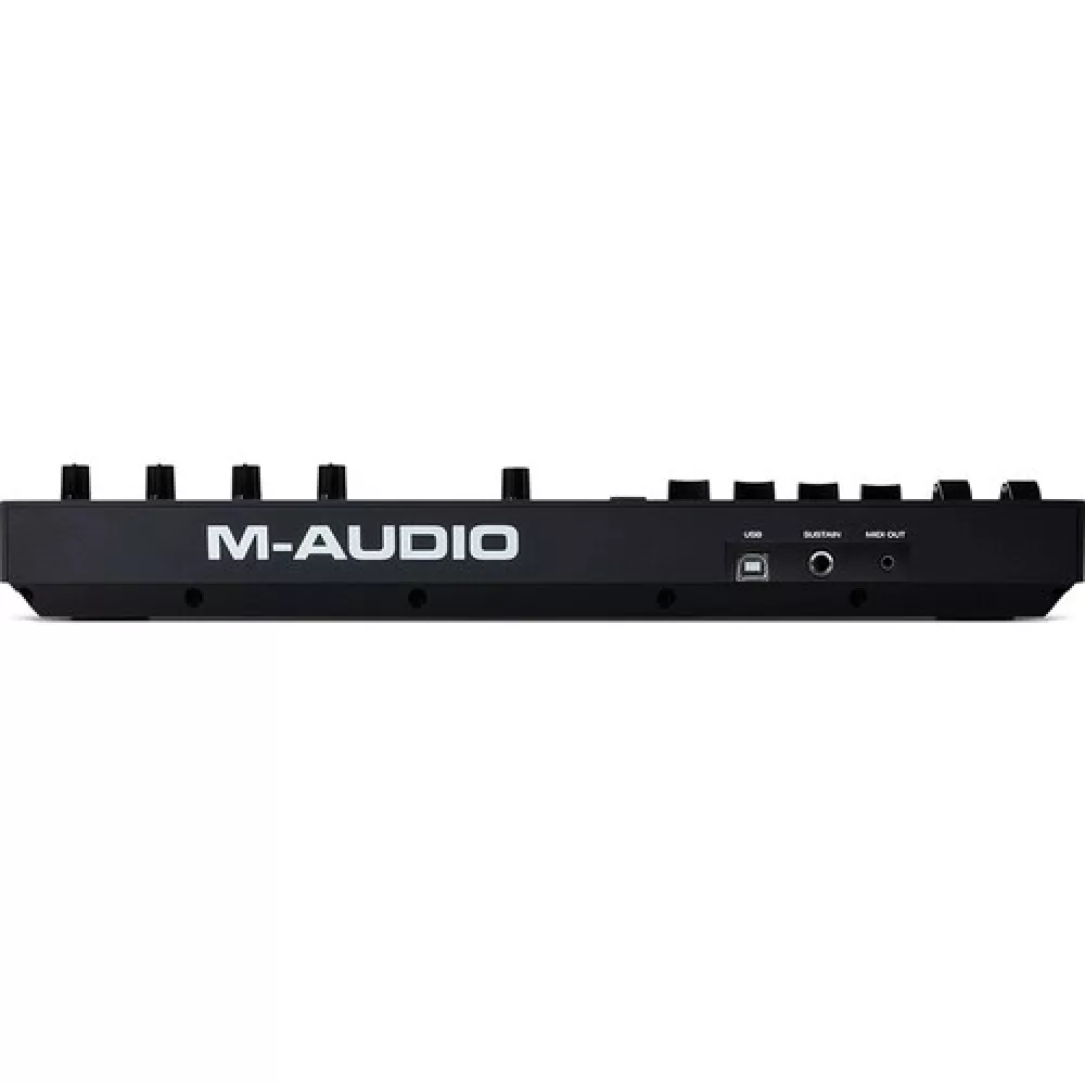 The M-Audio Oxygen Pro Mini features 32 velocity-sensitive mini keys with PrecisionTouch response, offering expressive playability in a portable size. Its compact design makes it perfect for mobile producers and small studio setups while maintaining professional performance capabilities.