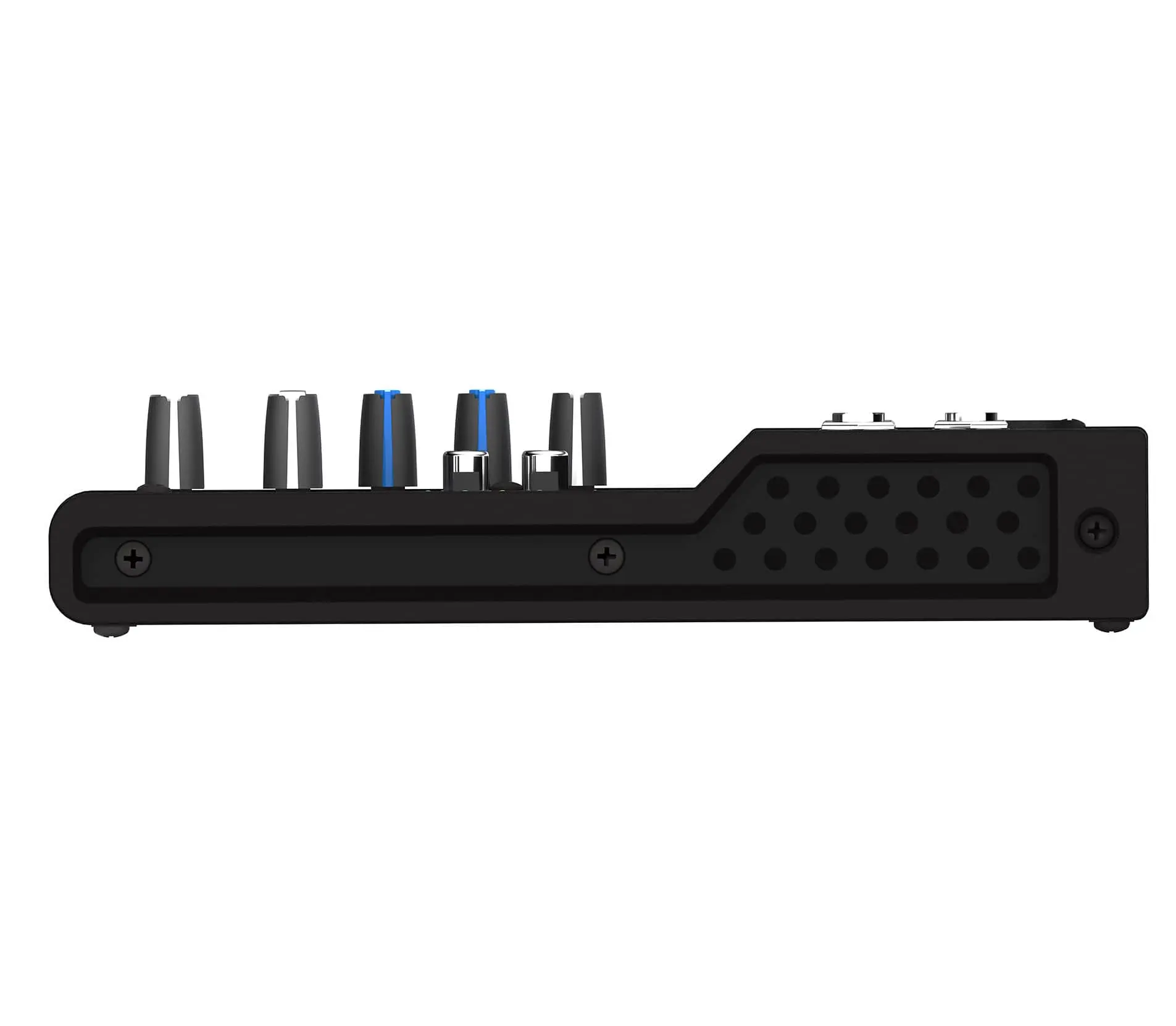 Housed in a durable rugged metal chassis, ensuring the mixer can withstand the rigors of travel and live use, providing long-term reliability for demanding applications.