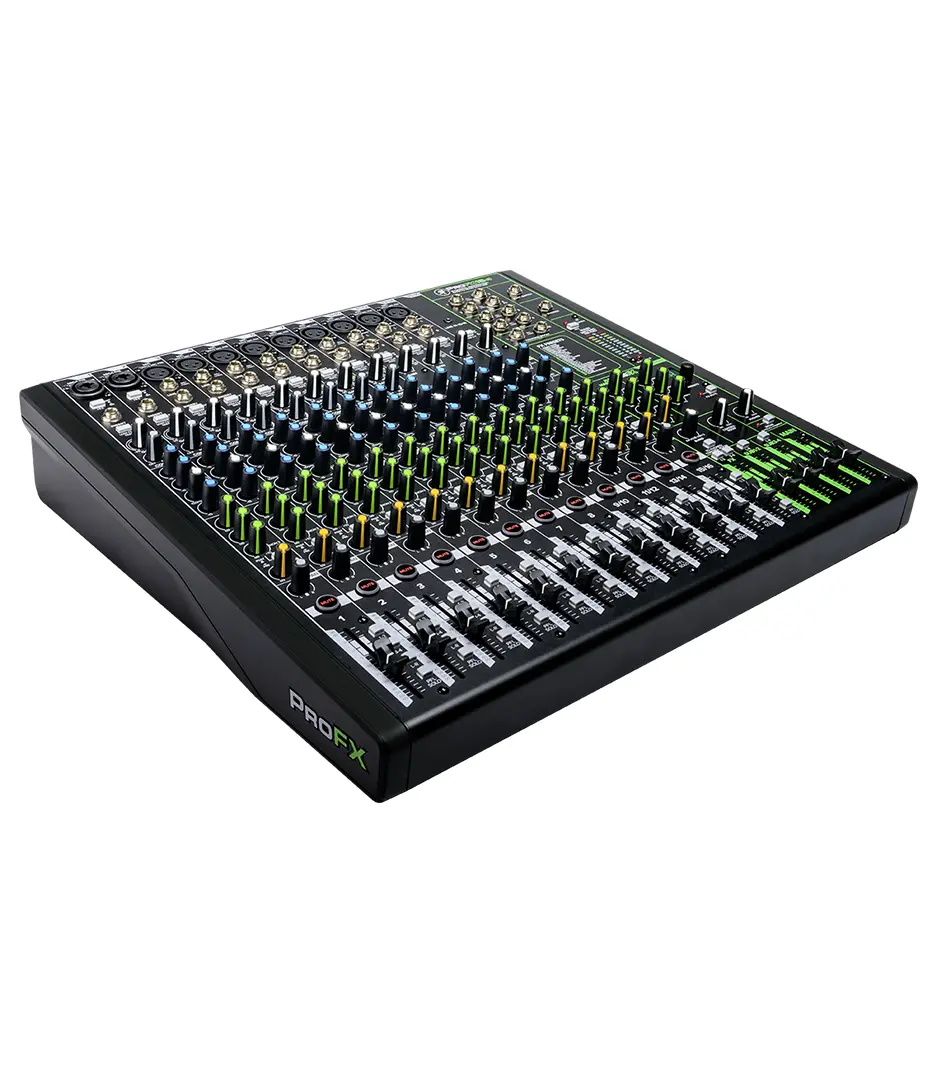 The Mackie ProFXv3 Series is an affordable analog mixer line optimized for live sound, home recording, and content creation. Features Onyx preamps (60dB headroom), 24-Bit/192kHz 2×4 USB recording, 24 GigFX™ effects, and includes Pro Tools | First/Waveform OEM software.