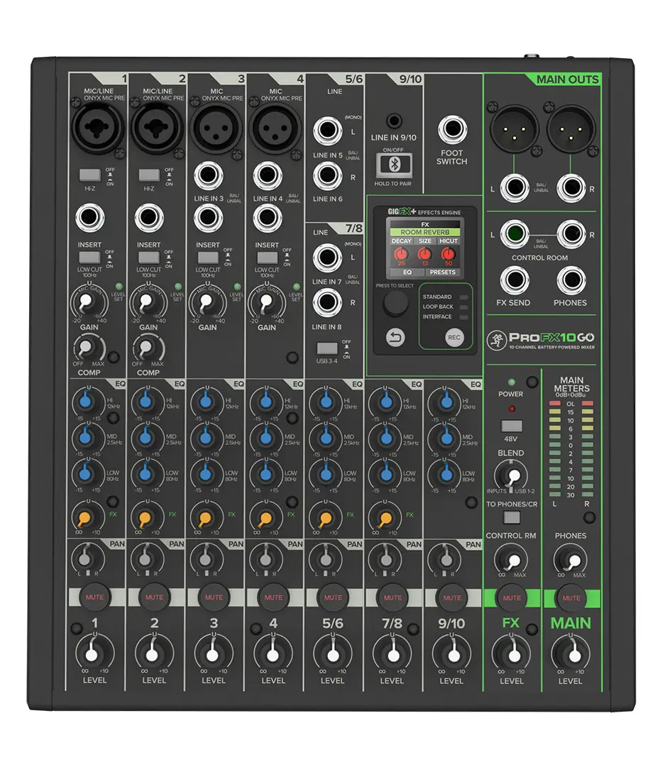 The built-in mixer eliminates the need for an external board in small setups. Featuring two of Mackie's versatile Wide-Z preamps, you can directly connect microphones, guitars, keyboards, or other line-level sources without worrying about matching input levels. RCA inputs are also included for connecting a music player or backing tracks.