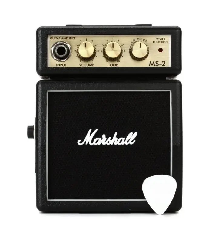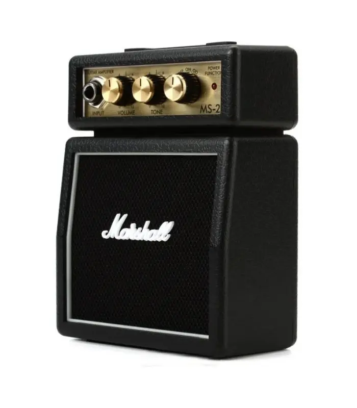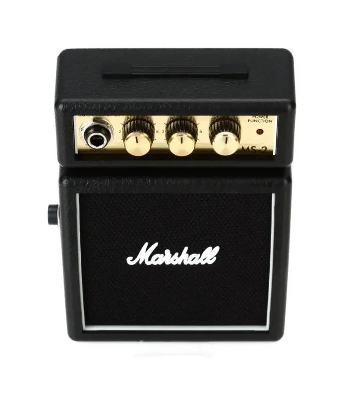 The Marshall MS‑2 is a compact 1-watt micro guitar amplifier designed for portable practice and on-the-go playing. Despite its tiny size, this mini amp delivers the classic Marshall sound and iconic styling, making it a favorite among guitarists who want a convenient practice solution or a collectible Marshall accessory.