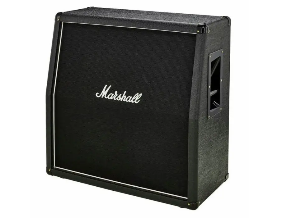 Its closed-back cabinet construction enhances bass response and keeps the sound tight and focused, helping the guitar cut through dense band mixes. Built with durable materials and finished in classic Marshall black tolex with white piping and the iconic Marshall logo, the cabinet maintains the timeless Marshall aesthetic while providing excellent reliability for touring musicians.