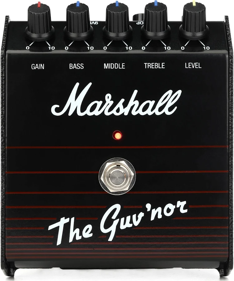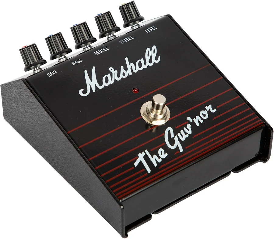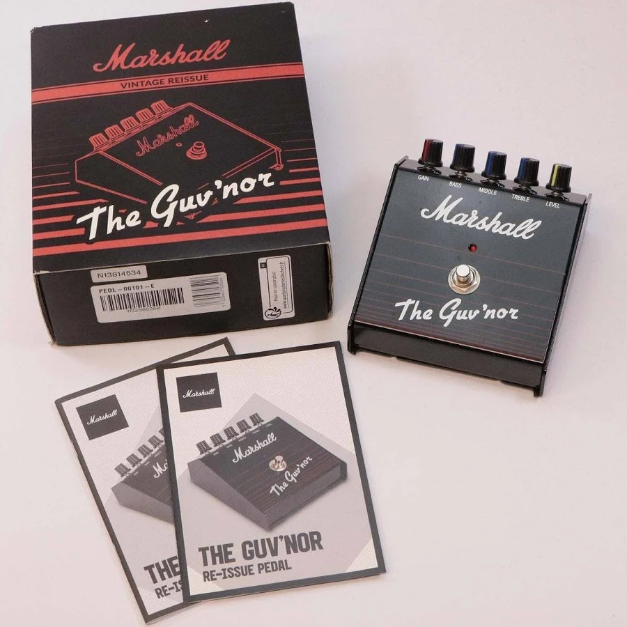 The Marshall PEDL-00101 The Guv’nor pedal is a legendary distortion and overdrive effects pedal designed to deliver the iconic Marshall stack sound in a compact stompbox format. Originally introduced in 1988 and reissued for modern players, this professional guitar effects pedal offers everything from smooth overdrive to aggressive distortion, making it ideal for rock, blues, and hard rock guitarists.