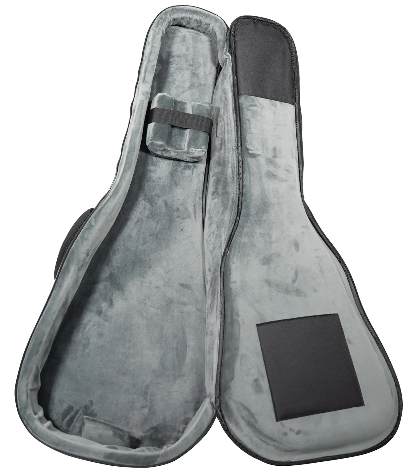 Crafted for resilience, the exterior features rugged black nylon, built to withstand regular travel and handling. Inside, your guitar will rest in luxury: the soft, dark grey plush interior lining surrounds a generous 20mm of thick foam padding. This exceptional level of cushioning offers superior impact resistance, effectively shielding your acoustic guitar from everyday bumps, scratches, and the general wear of travel.