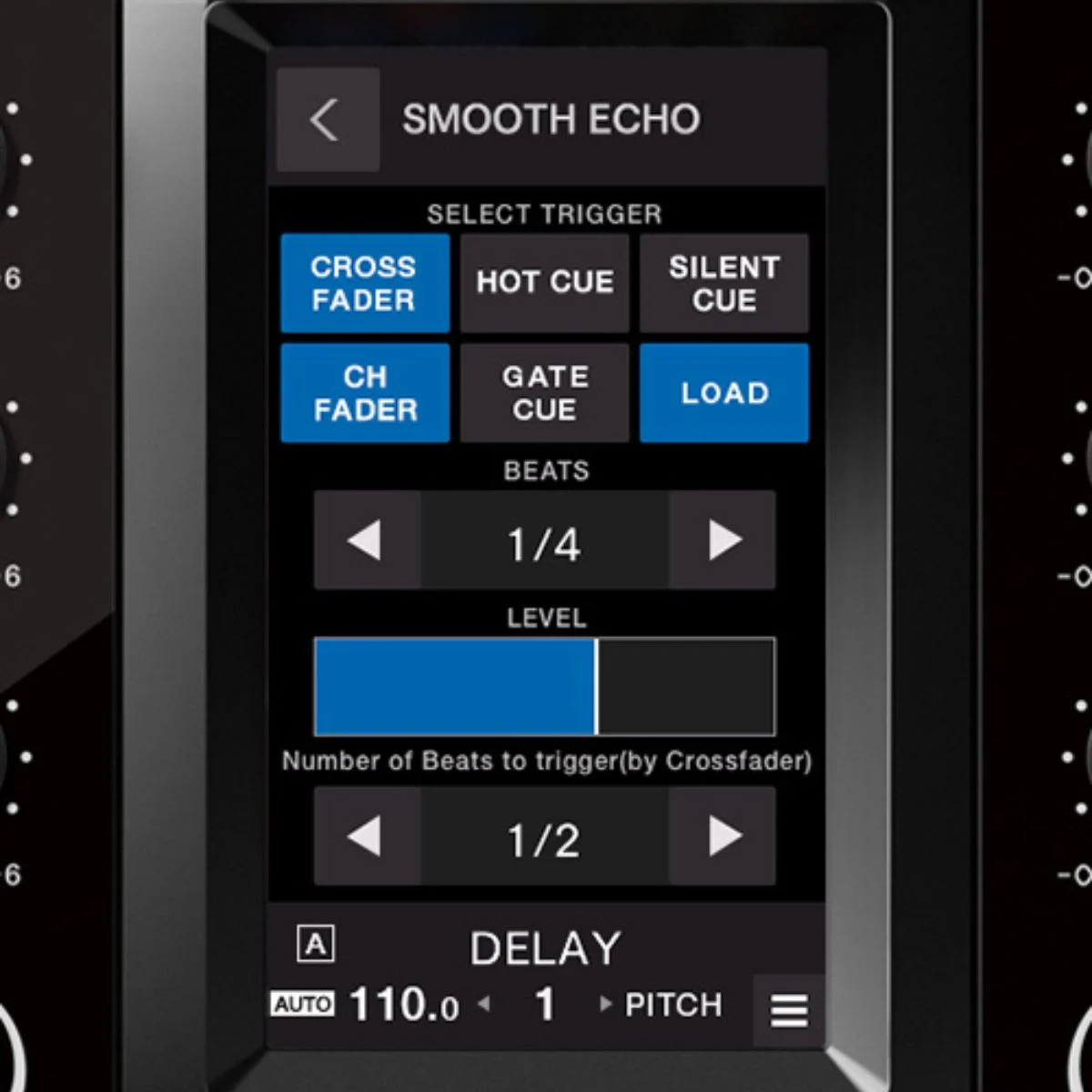 Spice up your sets with 22 Beat FX, including the new Fader Pitch and Helix. Smooth Echo is a new effect that you can automatically engage when you move the faders or hit the pads you’ve assigned as triggers.