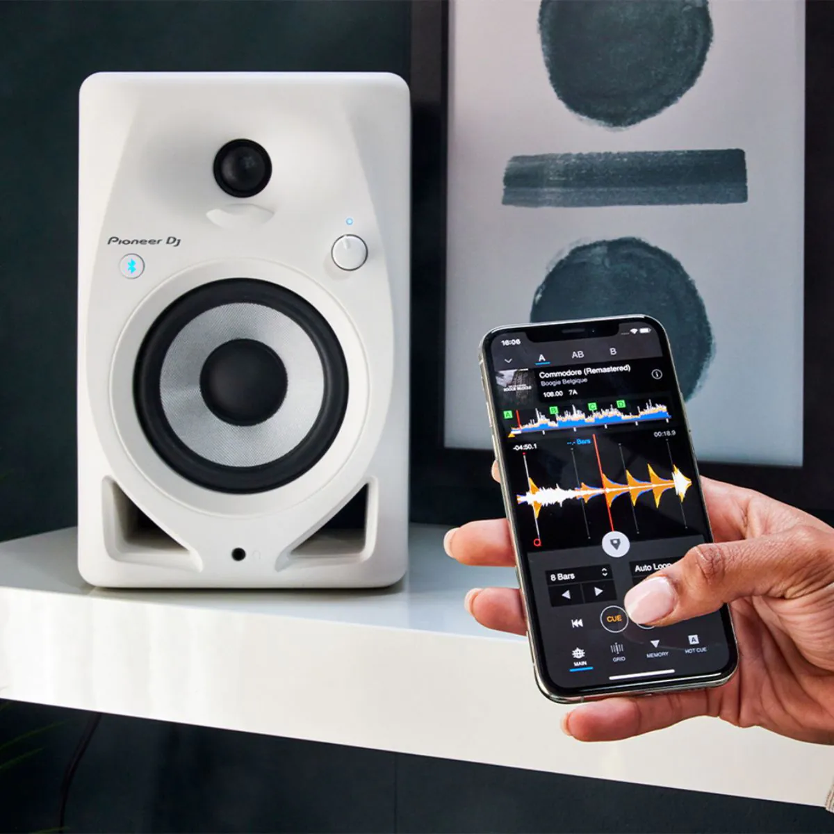 The Pioneer DJ DM-40D-BT Active Monitor Speaker (White) combines modern wireless convenience with accurate, punchy sound—perfect for DJs, producers, and creative professionals. Featuring a 4-inch woofer and powered by a high-efficiency Class D amplifier, this compact desktop monitor delivers clear mids, crisp highs, and controlled bass, making it ideal for home studios and DJ practice setups.