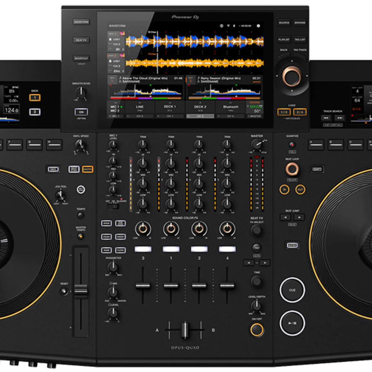 The Pioneer OPUS-QUAD is a premium 4-deck all-in-one DJ system compatible with rekordbox and Serato DJ Pro. Features a 10.1″ electrostatic touchscreen, dual-waveform displays, color-coded decks, and Smooth Echo effect. The ultimate choice for professional standalone performance.