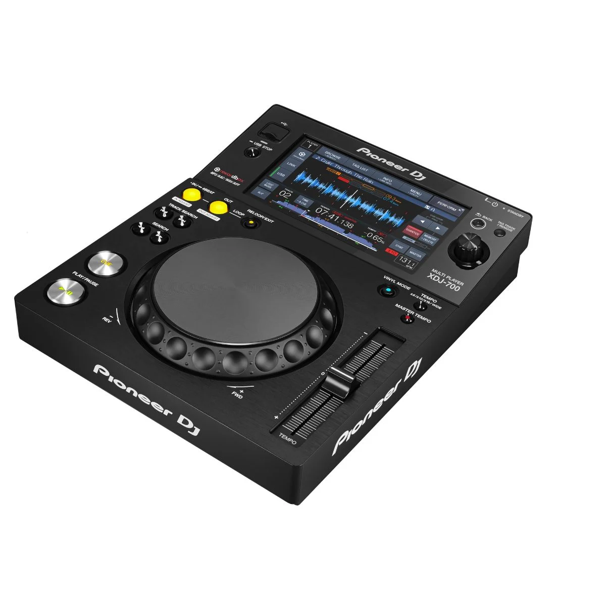 The Pioneer DJ XDJ-700 is a compact digital media player that brings club-standard features to the smallest booths and home setups. Featuring a large, full-colour touchscreen and a familiar club layout, the XDJ-700 inherits a host of advanced performance capabilities from its larger sibling, the XDJ-1000. Its slim profile and unique removable stand offer unparalleled set-up flexibility. Fully supporting the free rekordbox™ software, DJs can efficiently prepare and manage their tracks on a PC or Mac before enjoying seamless, professional-level performance via USB or Pro DJ Link.
