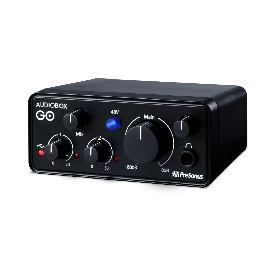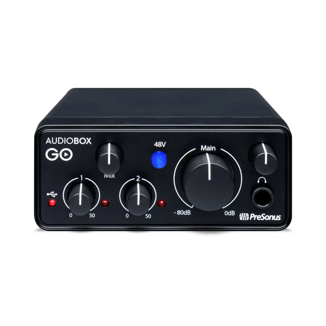 The AudioBox GO delivers studio-quality 24-bit/96 kHz audio in an ultra-portable design. With a Class-A mic preamp, Hi-Z instrument input, and phantom power, it’s ideal for recording vocals, guitar, and more. Perfect for home studios or mobile setups.