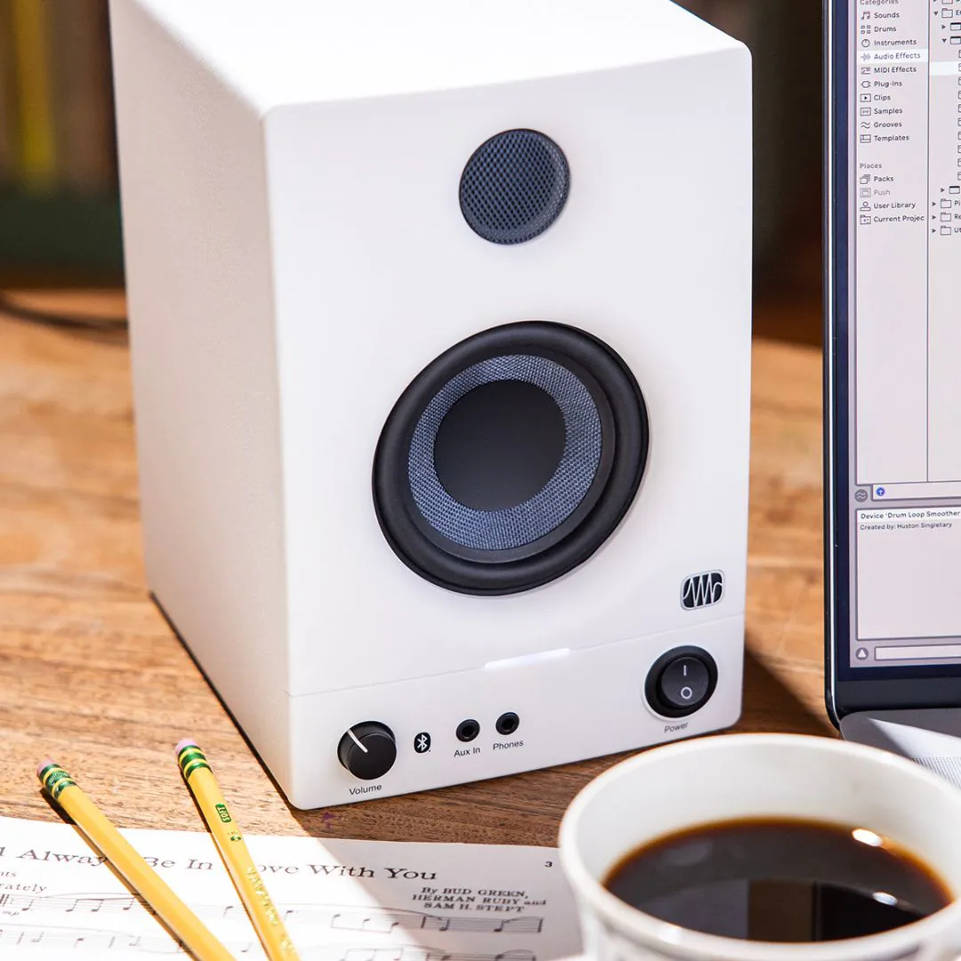 PreSonus Eris 3.5 studio monitors deliver clear, accurate sound with tight bass and smooth highs, making them perfect for home studios, multimedia production, gaming, and everyday listening.