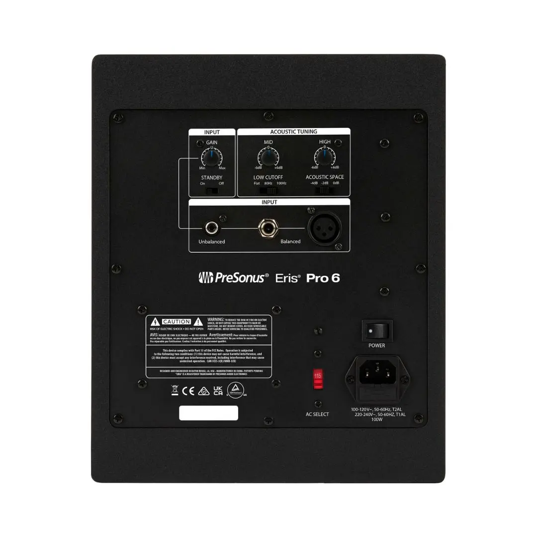 The PreSonus Eris Pro 6 is a flagship professional studio monitor with an advanced coaxial, point-source design for superior phase alignment and an enhanced sweet spot. Featuring 140W Class AB bi-amplification and full acoustic tuning controls, it delivers high-resolution audio perfect for any home or project studio.