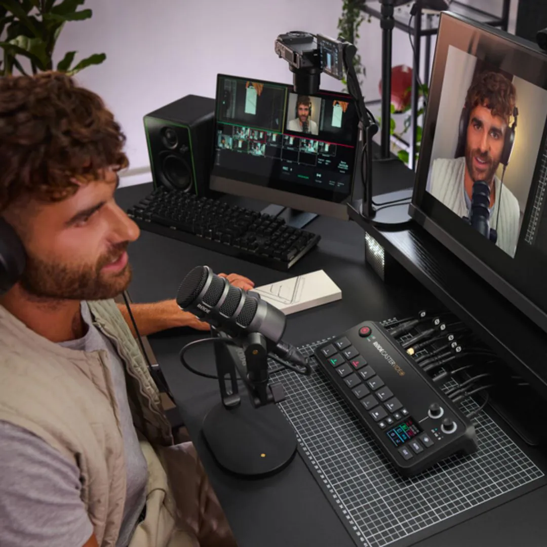 The RODECaster Video is an all-in-one HD video switcher and professional audio control hub designed for creators, streamers, podcasters, and live event producers. With support for up to six video inputs, real-time scene switching, and built-in chroma keying, it empowers you to deliver broadcast-quality visuals instantly. Its studio-grade audio processing ensures clear, polished sound, while Wi-Fi 6, Ethernet, and direct-to-platform streaming make live broadcasting effortless. Record your sessions directly to external USB storage and fine-tune every detail using RODE Central for a smooth, efficient, and fully customizable production workflow.