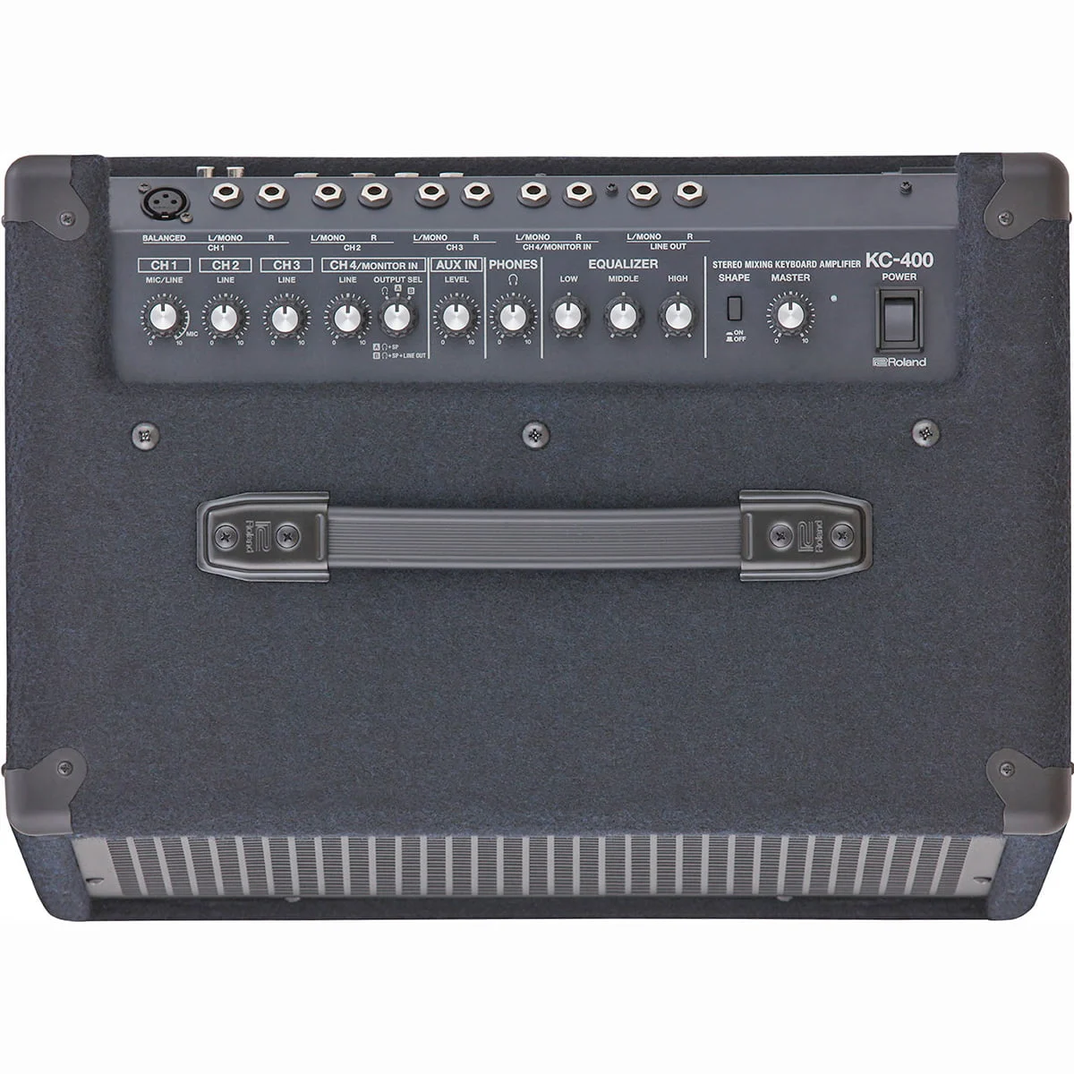 For over two decades, keyboard players everywhere have relied on Roland’s KC amps for their powerful high-fidelity sound, onboard mixing features, versatile connectivity, and lasting durability. The latest generation carries on the time-honored KC benchmark of quality while offering new enhancements tuned for the needs of today’s working musicians. With a KC amp by your side, you’re in complete control of your stage rig, so you’ll always sound great and play your best. And that’s worth it every time. Packed with many new design features, the KC-400 updates the previous-generation KC-350, a longtime players’ favorite. The power has been increased to 150 watts, and the two-way speaker system features a newly designed 12-inch custom woofer for improved sound quality. In addition, the power section has been completely redesigned for better stability, enhanced bass reproduction, and reduced weight. With the KC-400’s built-in mixer, you’re able to connect a variety of stereo keyboards and instruments, plus an XLR vocal mic. And via the Stereo Link function, you can easily chain a second Roland KC-400 for more inputs and true stereo amplification on stage.