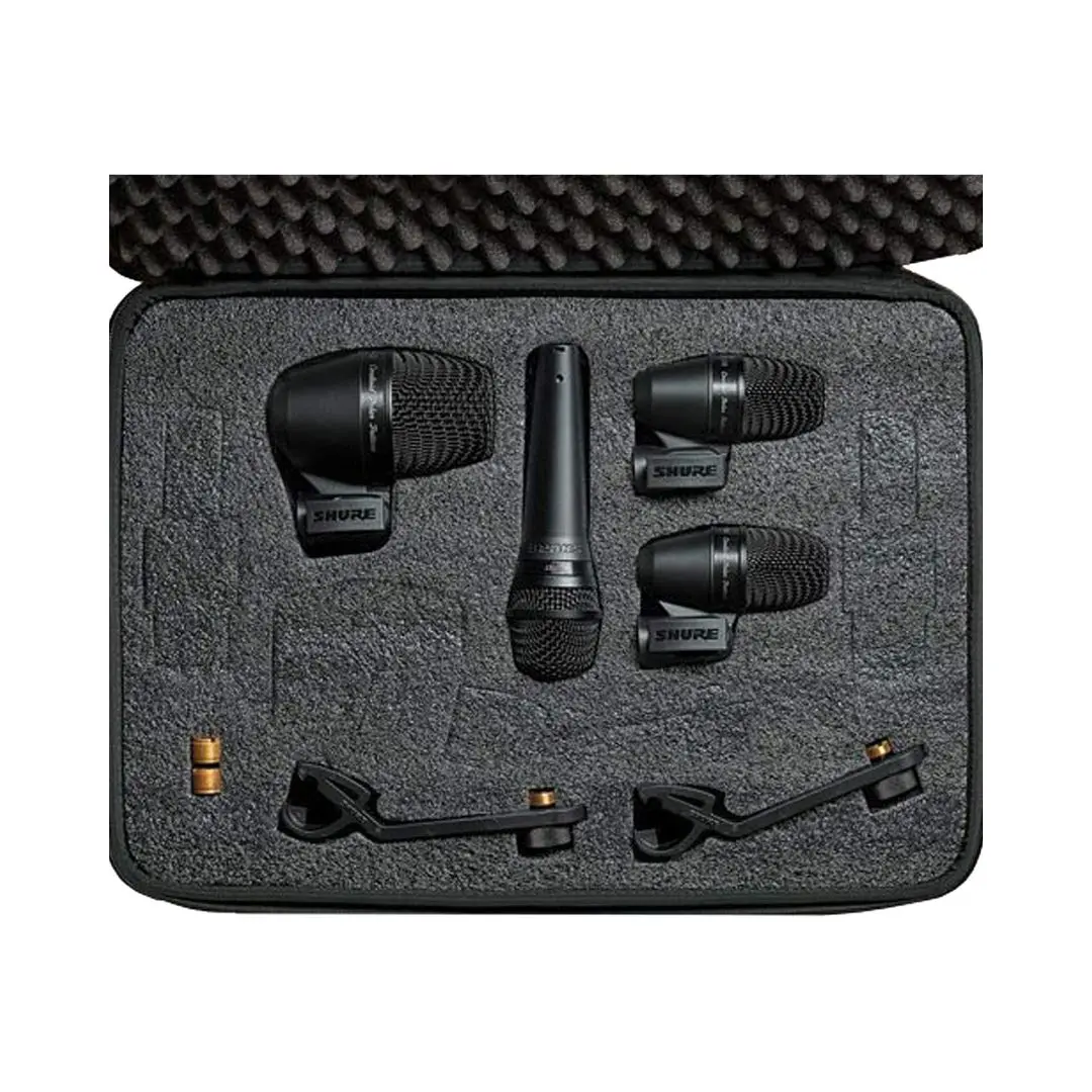 The Shure PGADRUMKIT4 Drum Microphone Kit is a professional 4-piece mic set designed to capture the full impact and detail of your drum kit in both studio recording and live performance settings. Each microphone is specifically tuned for kick, snare, and toms, delivering accurate, powerful sound with deep low-end response and sharp attack.