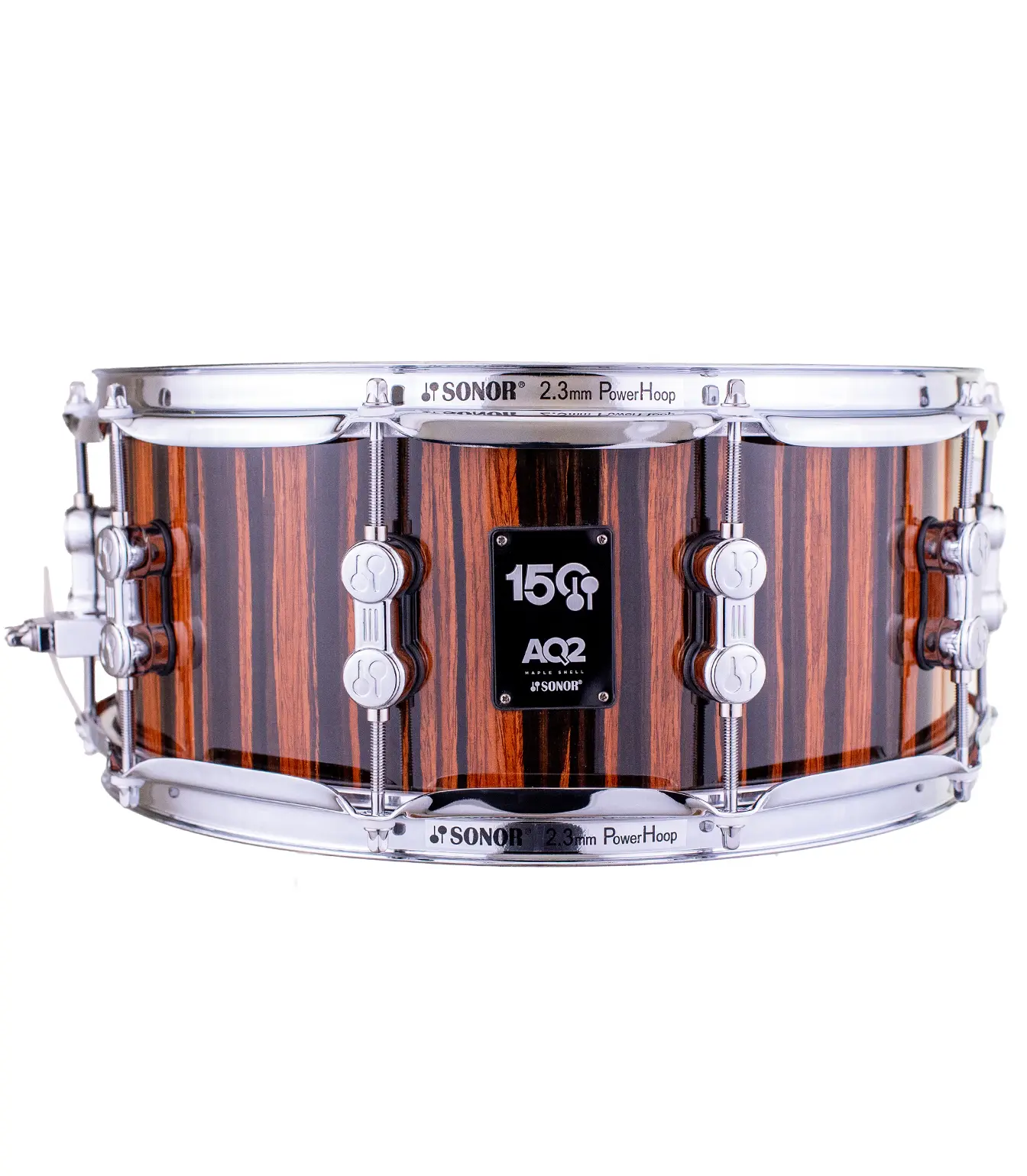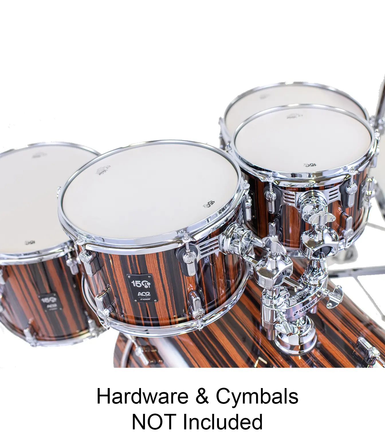 Crafted from 100% maple shells, blending North American and Chinese maple, the AQ2 Anniversary Shell Set delivers a balanced tone with warmth, clarity, and powerful projection. The vertical-grain Ebony Replica veneer, finished in a clear high-gloss lacquer, reflects SONOR’s high-end aesthetic standards and timeless elegance. From rehearsals to live performances, these shells respond dynamically to every playing style.