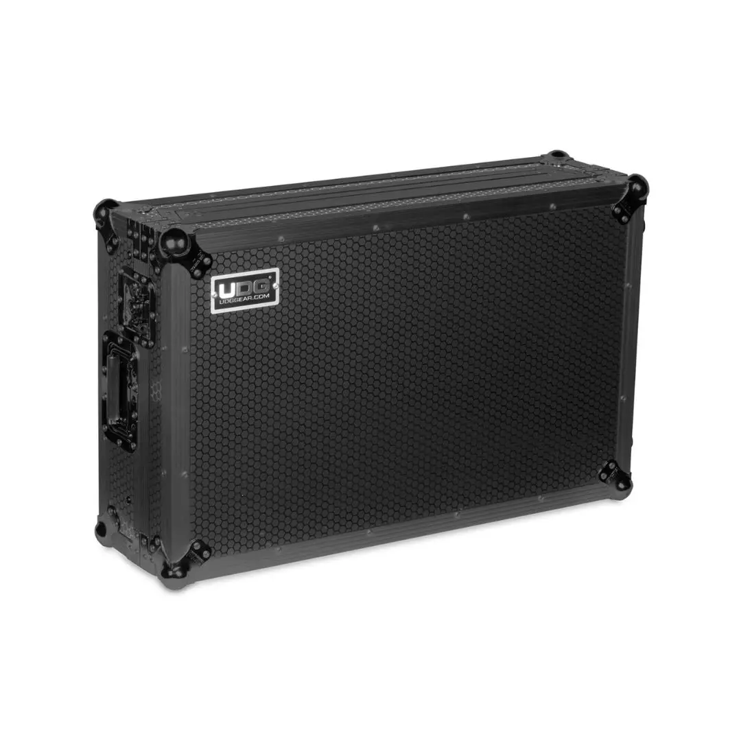 The UDG Ultimate Flight Case DDJ-REV7 Black Plus is a professional DJ travel case designed for the Pioneer DDJ-REV7 controller. Built with 9mm thick plywood and a black honeycomb “Stage Grip” finish, it combines durability with a sleek, professional look. The diamond-embossed EVA foam interior securely cushions your controller, while the adjustable laptop shelf provides space for your computer or additional gear. Heavy-duty handles, rolling wheels, and secure stacking ball corners ensure effortless transport and stability during professional setups. Ideal for touring DJs, mobile performers, and studio use, this flight case provides reliable protection, convenient portability, and a stylish presentation for your equipment.