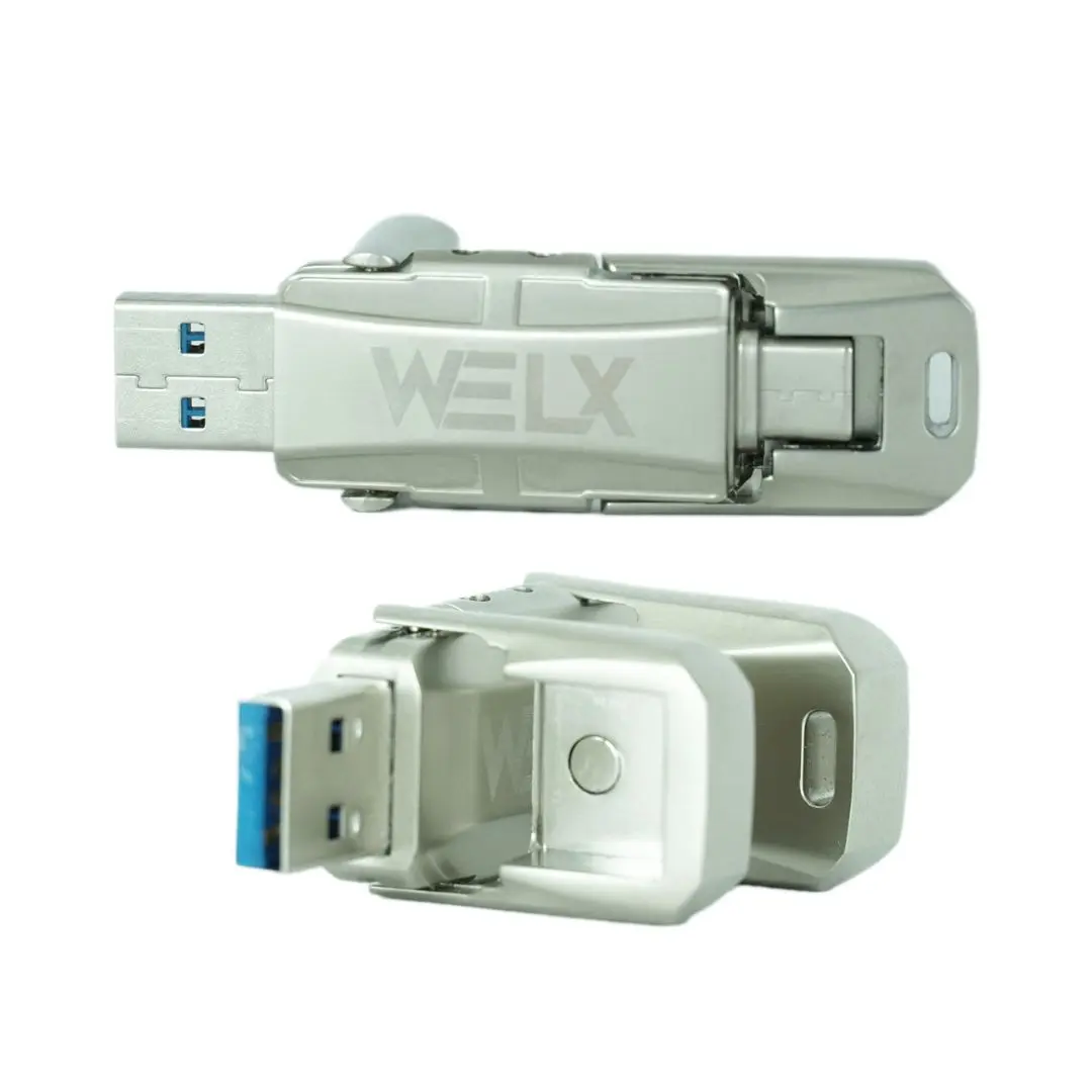 The Welx Ultra Fast USB 3.2 Dual C & A Type drive features both USB-C and USB-A connectors, ensuring seamless compatibility with modern laptops, tablets, and legacy DJ gear. This dual-interface design eliminates the need for adapters, making it easier to switch between devices in the studio and on stage.